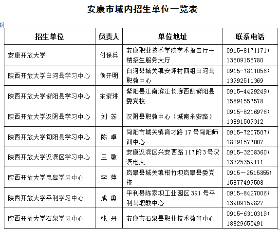 2、安康开放大学招生办公室现场报名。(带身份证,毕业证,报本科还需学信网学历电子注册备案表,护理专业需带执业证或资格证;药学专业需带在岗证明。)